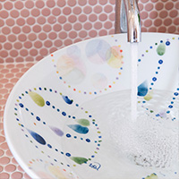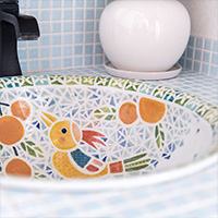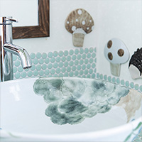 | A word from the author | 陶器の小片が組み合わされるモザイクの表現が、私の想像を広げてくれました。 明るく、楽しい色と形は元気の源です。 触ると感じる、なんとも言えない凸凹感から何かを感じてもらえたらうれしいです。 | ||