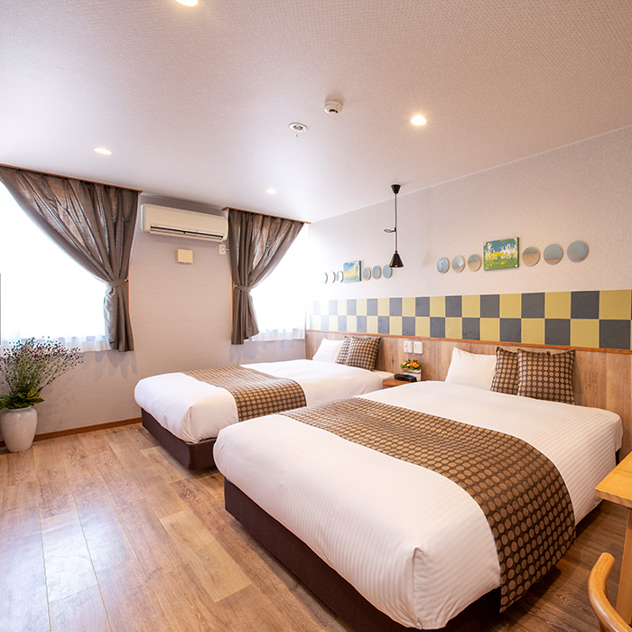 | 客室設備 | テレビ・小型冷蔵庫・空気清浄器・ポット・お茶セット・ドライヤー・Free Wi-Fi・無線LAN |